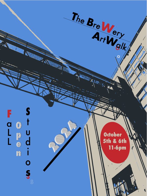 Description: To me the most iconic area of the Brewery is the sky bridge. I remember coming here as a visitor and being in awe of that area in particular. I also like the futurist theme for an Artwalk poster due to the collective nature of the Brewery. This image incorporates the sky bridge into multiple Futurist elements.