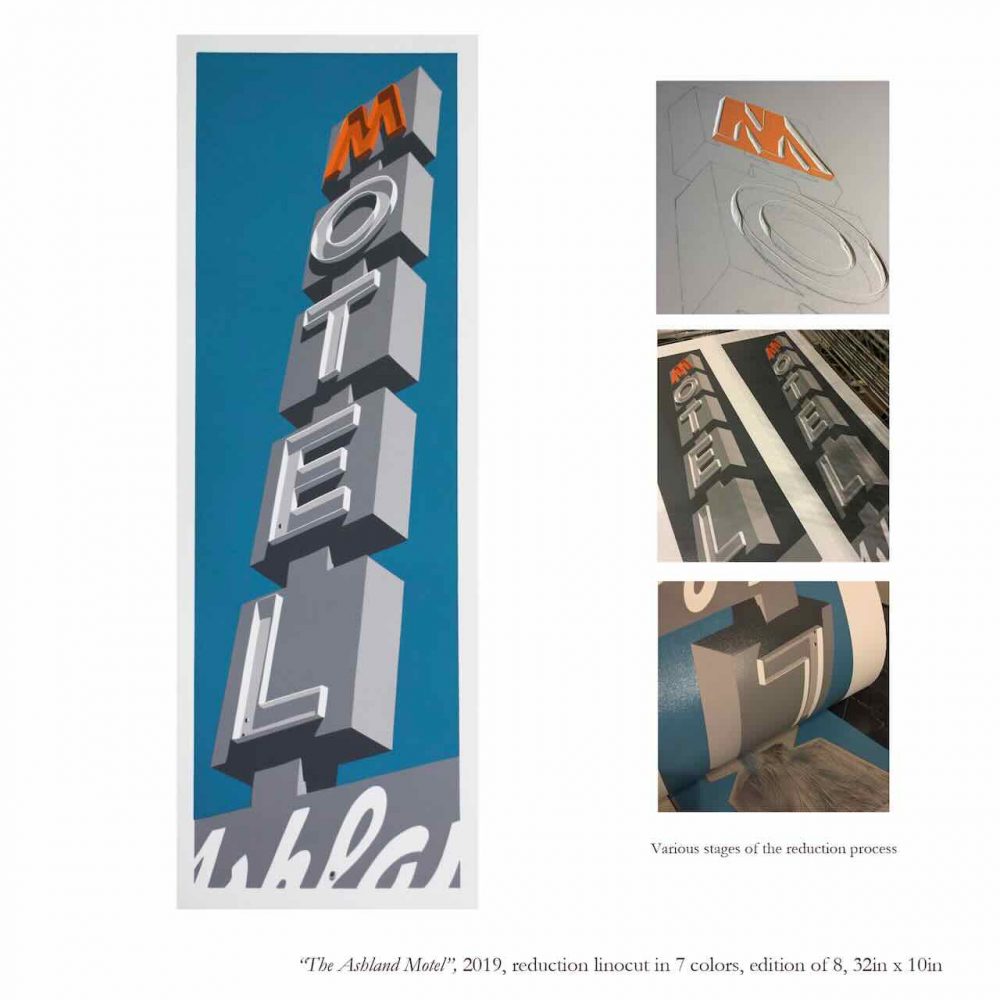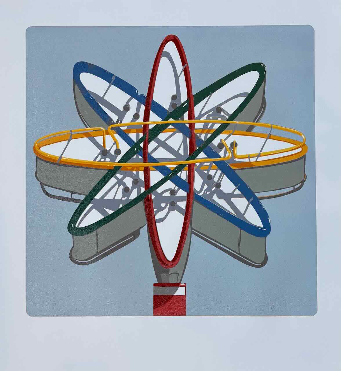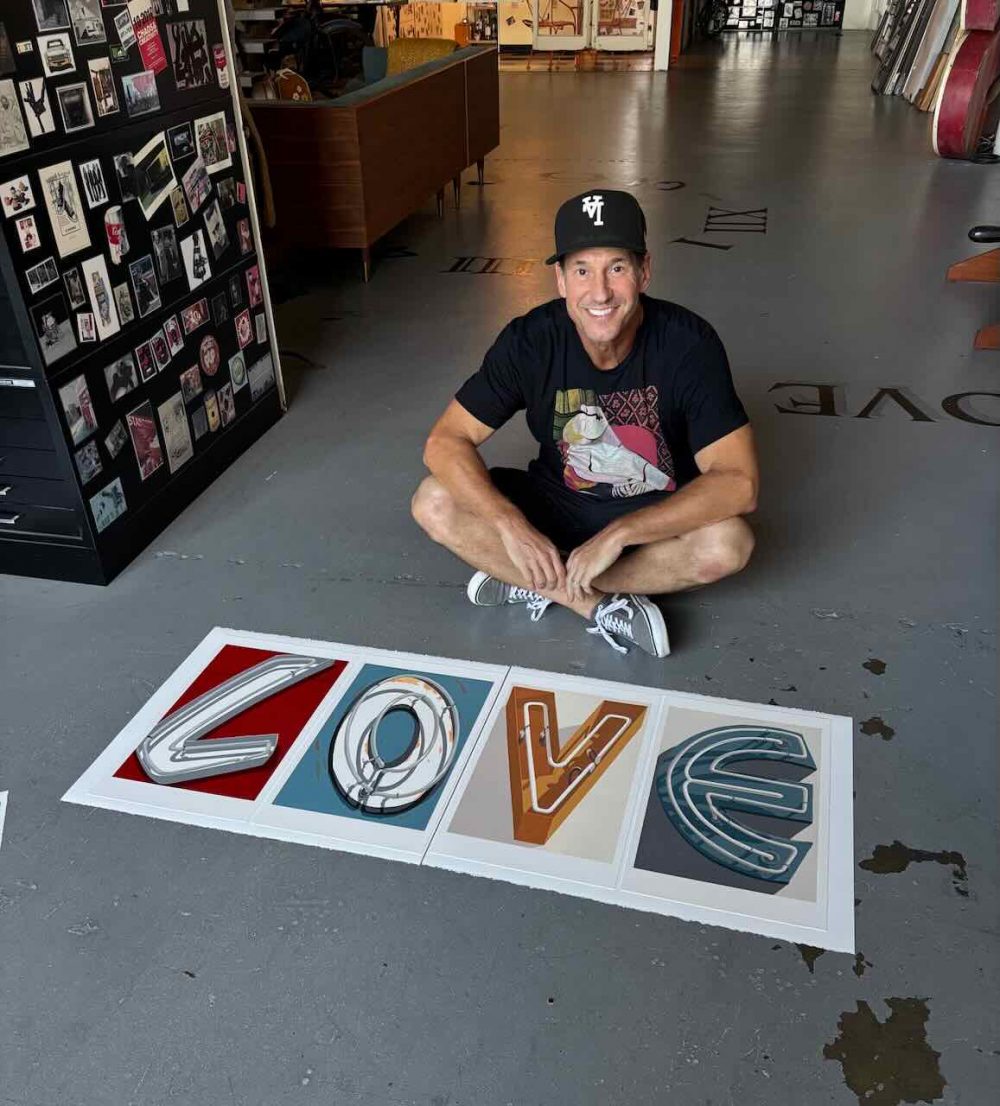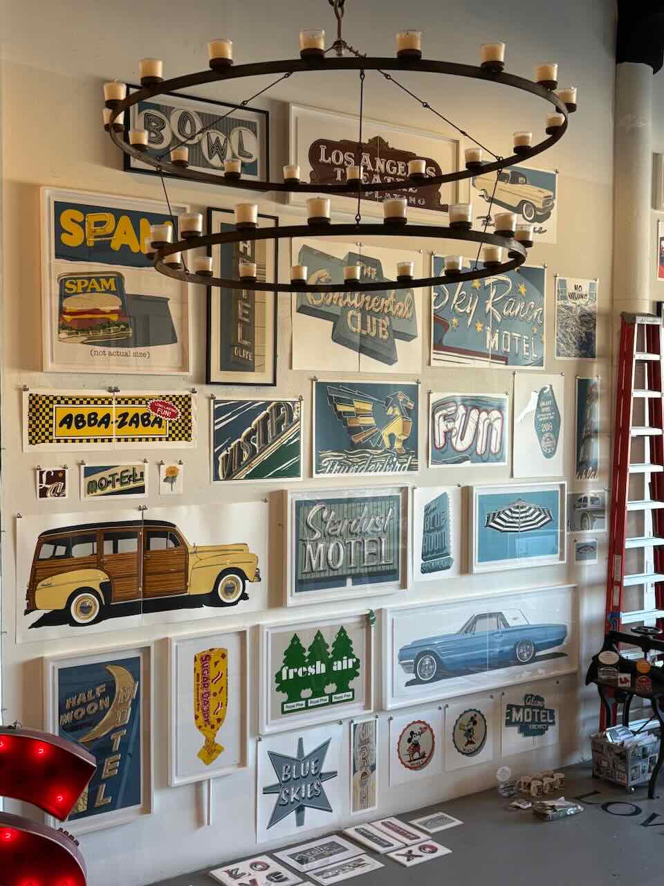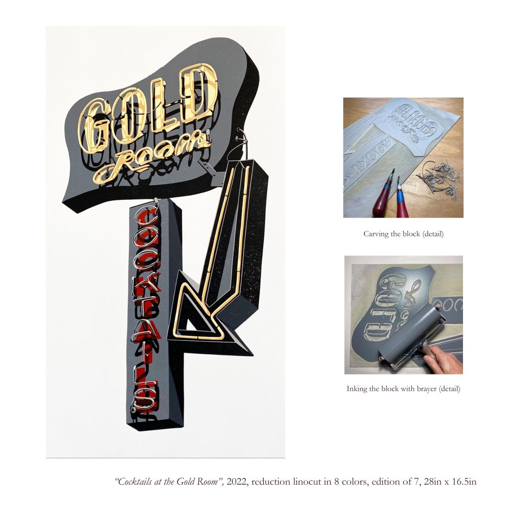 Dave Lefner is a Los Angeles-based artist renowned for his mastery of reduction linoleum block printing. His work captures the vibrant essence of mid-century American pop culture, particularly focusing on vintage neon signs and urban landscapes. Through a meticulous process, Lefner layers colors with precision, creating bold, graphic imagery that evokes nostalgia and timelessness. His prints are celebrated for their intricate detail, vibrant hues, and the labor-intensive method that reflects a deep commitment to his craft. Lefner’s art has been exhibited widely, earning him a dedicated following and recognition as a leading figure in contemporary printmaking.