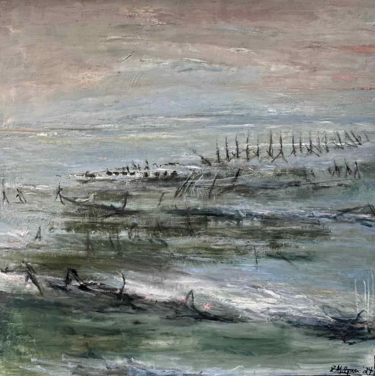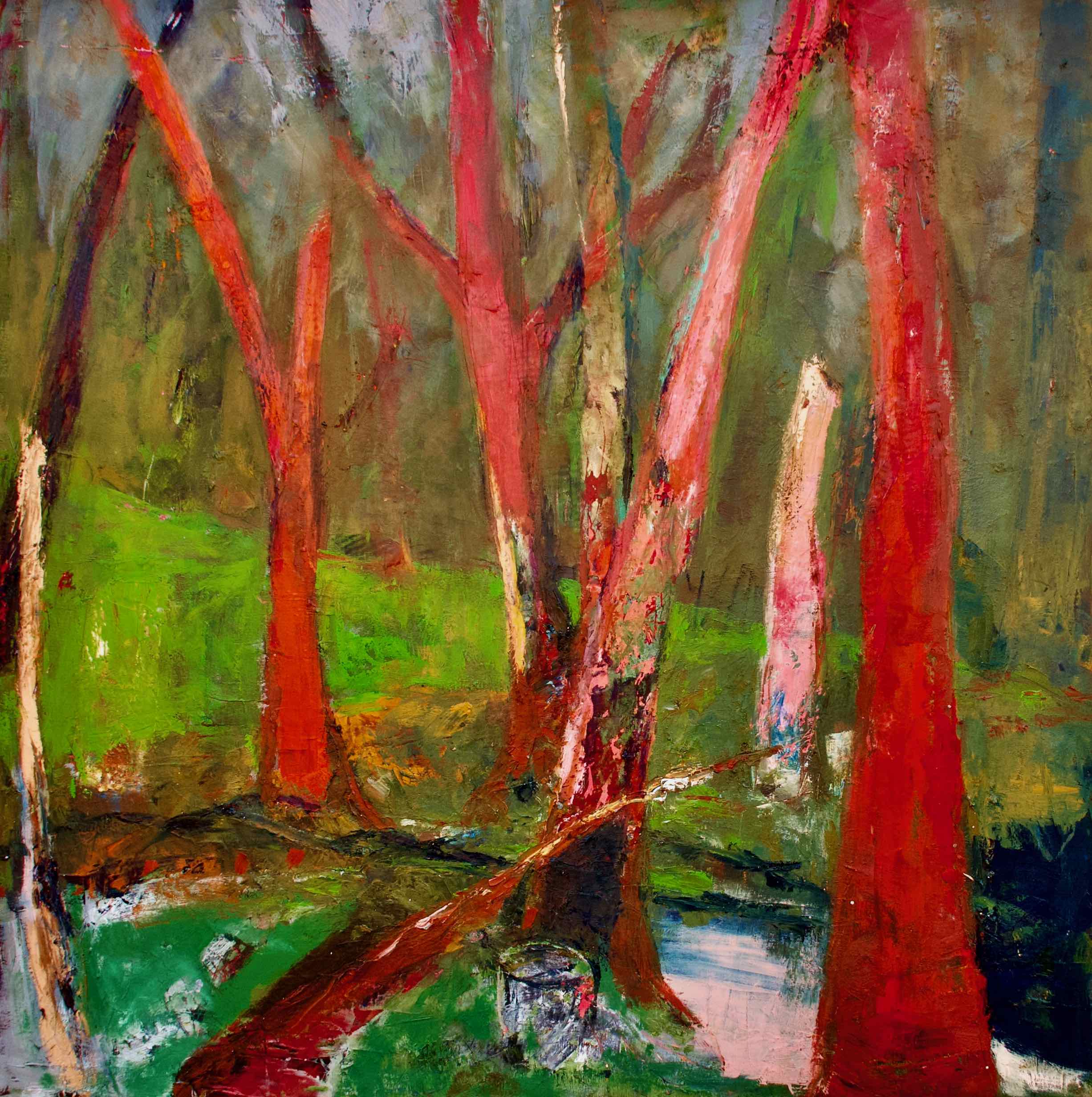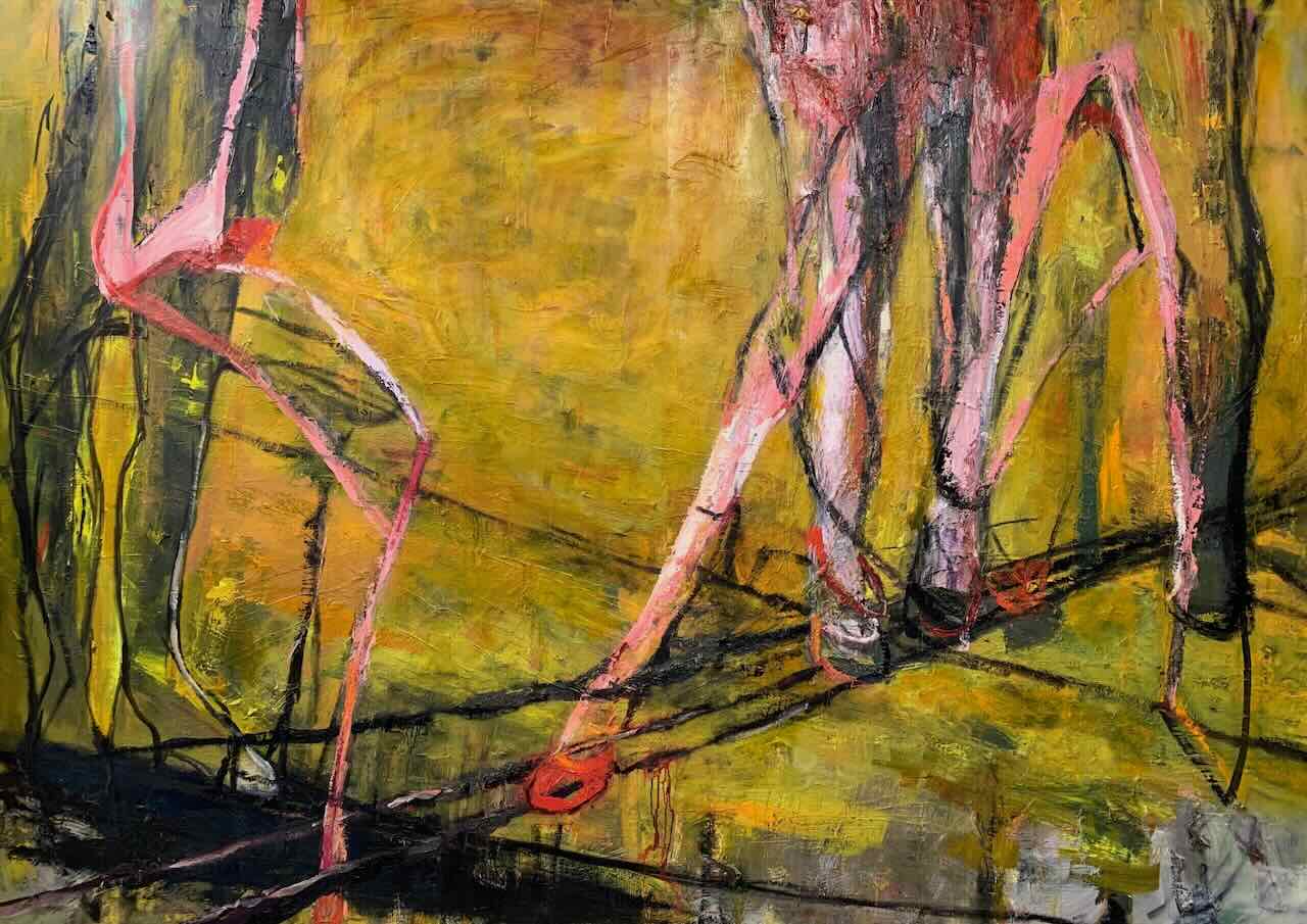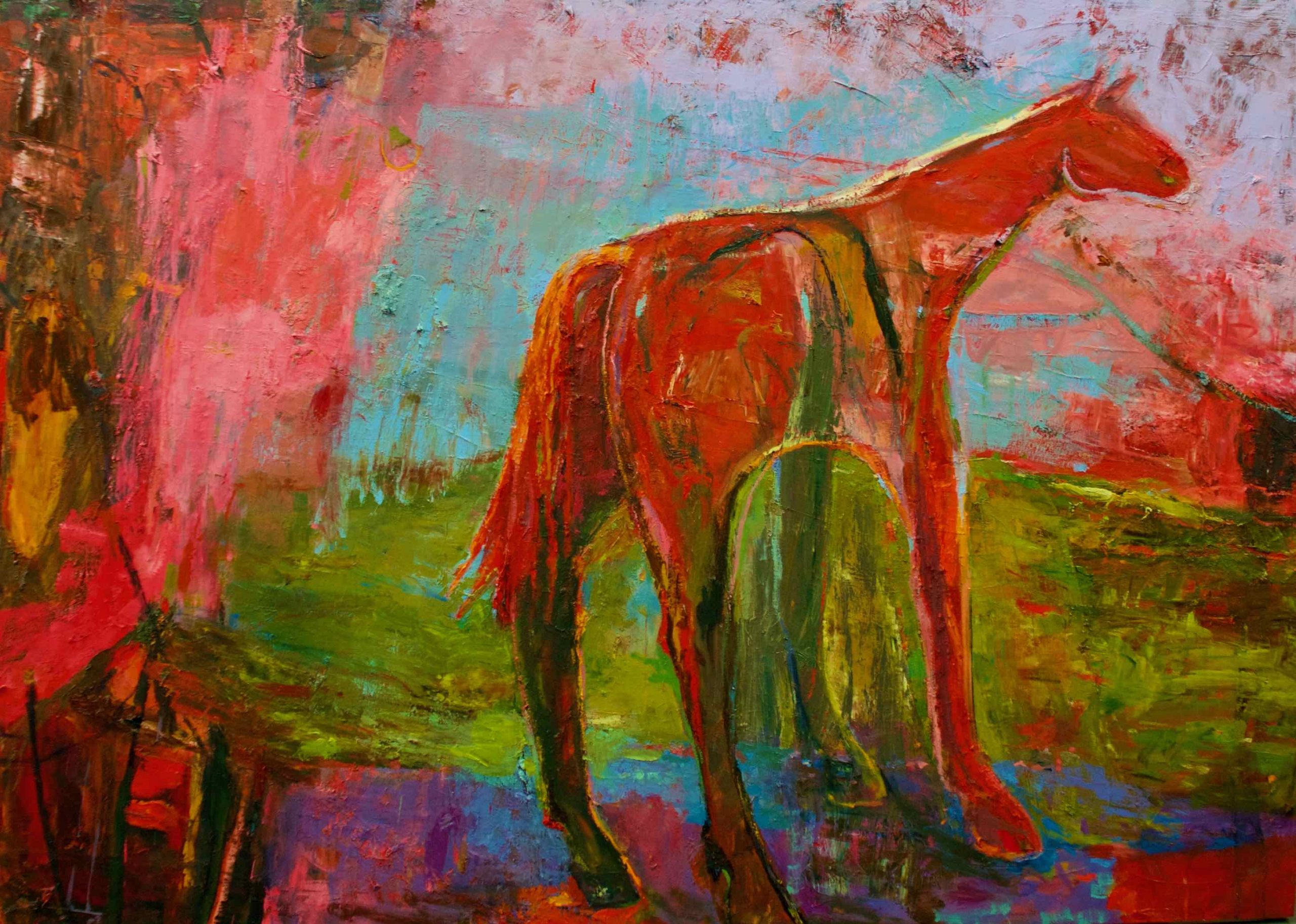 Halpern’s paintings operate between symbol and metaphor. They map an inner world and a complex emotional landscape. Her work is a diary of fragments from dreams, incidents from daily life, and internal monologues that ground the work in a personal mythology. Strong emotional undercurrents combine with murky narratives of danger, loss and destruction, reflecting a sense of unease in an unpredictable world. She draws from her life experiences, relationships, current events and the processes inspired by Jung and the Surrealists that seek to unlock the door of the unconscious. She aspires to create work that deepens our understanding of the ways in which certain personal meanings reflect the complex matrix of universally shared emotions.