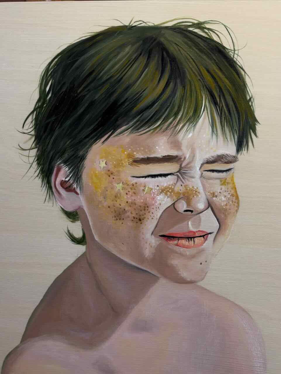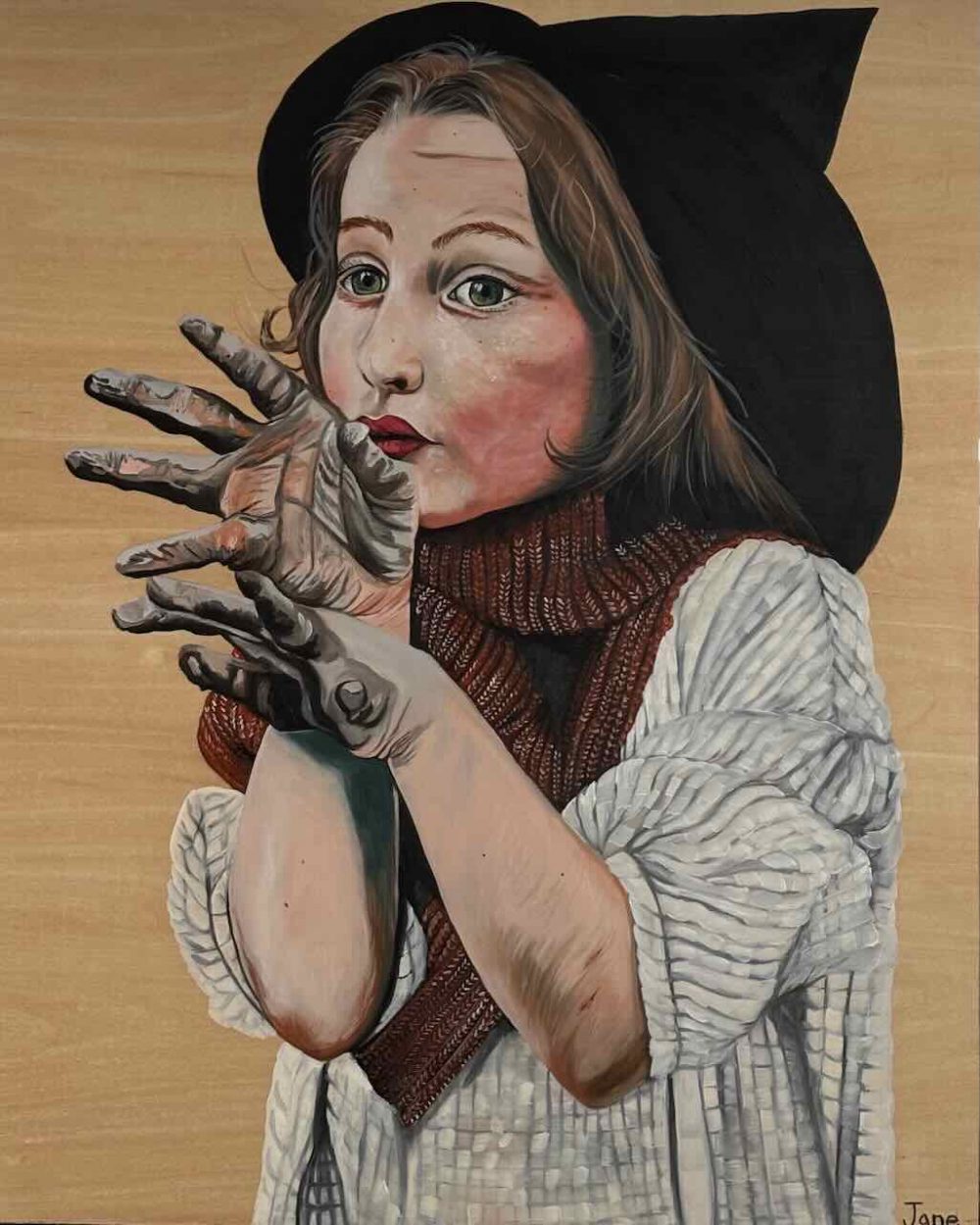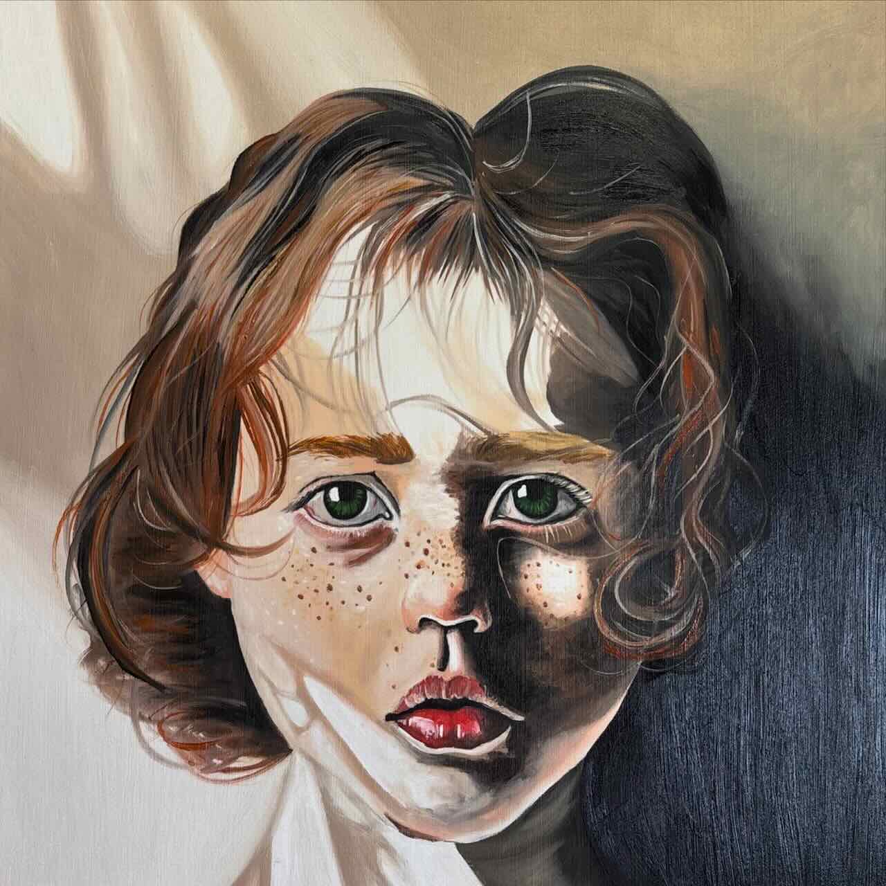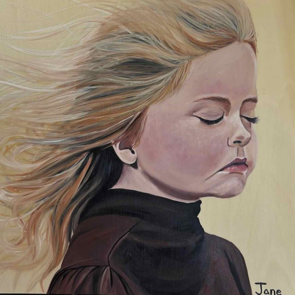 Samantha Jane Harrold paints her emotions, disguised as portraits of whimsical children, with exaggerated details. She paints herself, over and over again, to release all the wild parts of her, into the world. She signs her work with “Jane,” her middle name, inherited by her great grandmother who was also an artist.