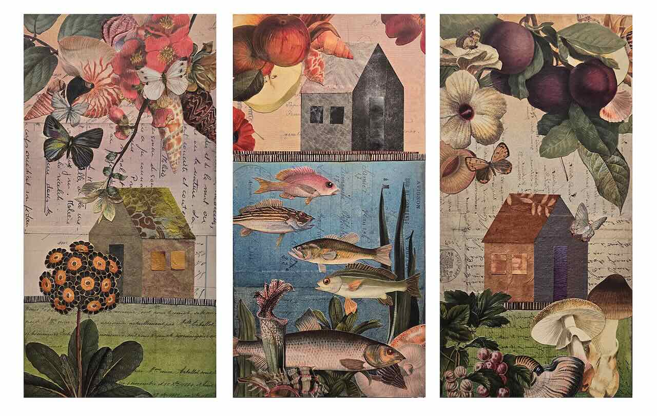 Susan Savory was born and raised in a small city on the banks of the Susquehanna River in Central New York. After completing her BFA in Illustration at Parsons School of Design in New York City, she worked as an illustrator, with a special affection for children’s picture books. Susan has experimented in almost every medium: painting and drawing as well as glass, clay, fiber and metal, and has shown her work in galleries and museums throughout New York, New England and California. She has curated several gallery shows in Maine, Massachusetts, and Los Angeles; and was the curator/manager of the Art, Craft & Design Showcase for the League of New Hampshire Craftsmen from 2016 through 2023. Her most recent personal works include a series of mixed media assemblages built with vintage photographs, found objects, oil pastel and colored pencil. Susan also creates jewelry incorporating her own metalwork and lampwork glass beads as well as antique silver, stones, and other small treasures collected in her extensive travels. Savory has been a Brewery (and California) resident since January of 2014.