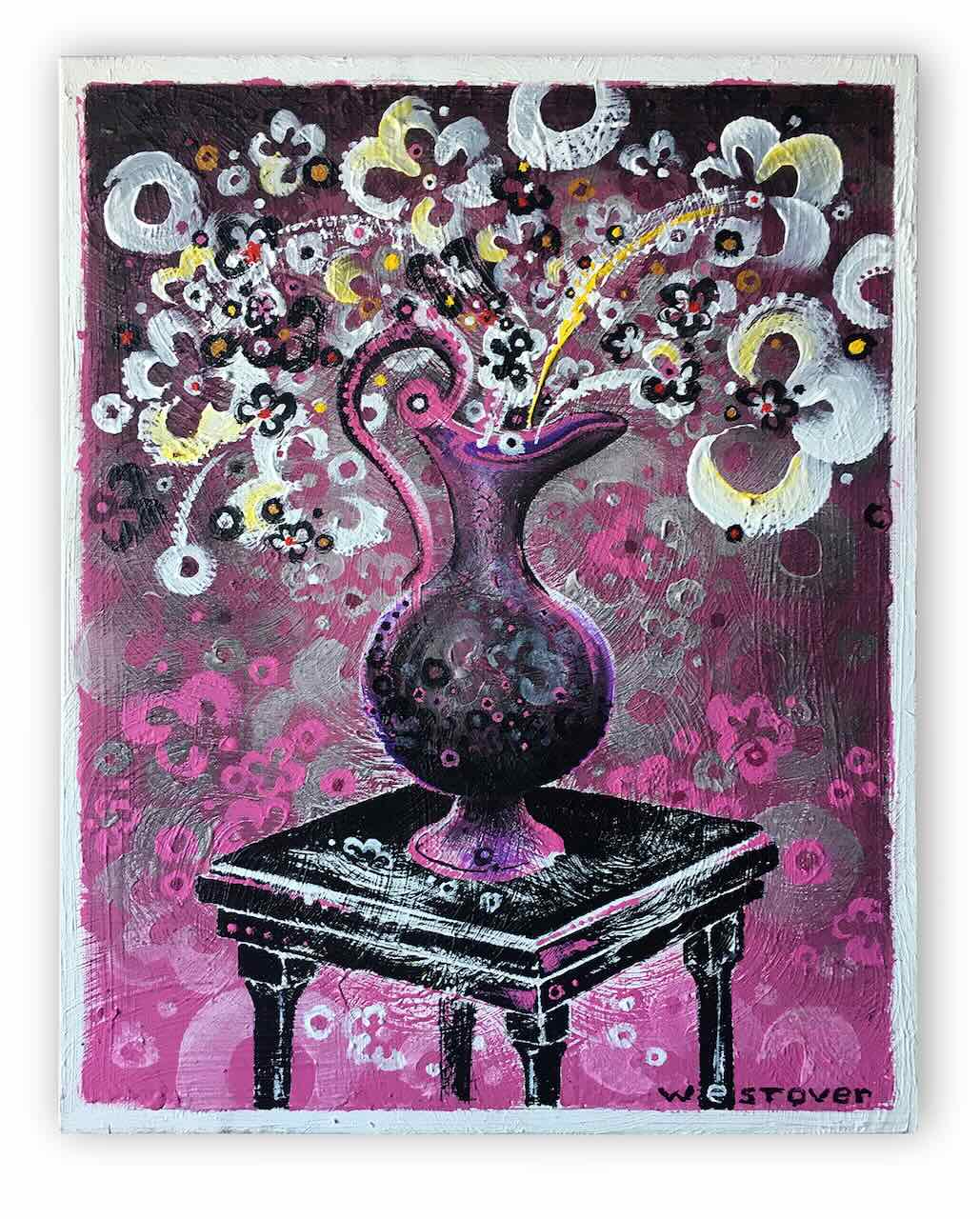 As a child, Todd began doodling the Flower-Power graphics popular in the 1960s and 70s. With the deft utilization of simple forms, he is able to create portraits, houses, scenics, full-figure nudes, abstract statements and vases on tables. The repetitive rounded curves and flowing circles have a familiar sensuality that most people, consciously or not, seem to find appealing and comforting. His paintings and murals all share the same joyous iconographic doodles of his youth, thereby fulfilling his desire to bring a smile to your face, and a bit more joy into the world. His paintings are a celebration of life, as flowers are a symbol of renewal and regrowth. The message: Enjoy life. Todd is currently a resident of the famous Brewery Arts Colony in Los Angeles, CA. westovertodd.com